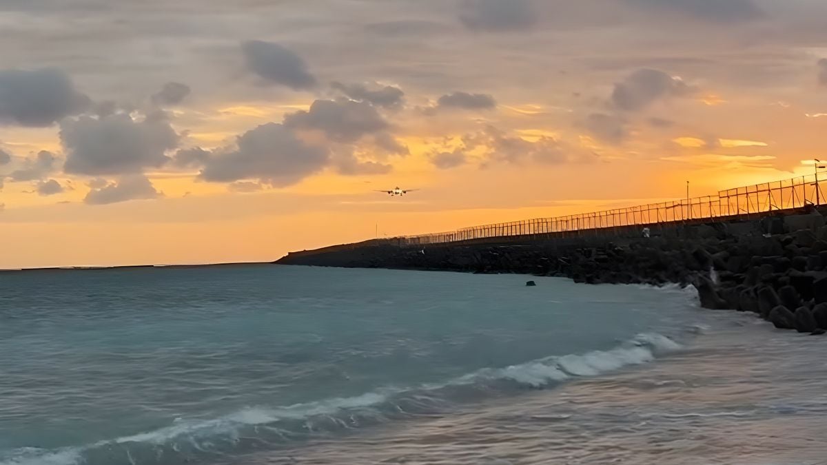 Daya tarik: Sunset dengan latar pesawat, pasir putih, perahu nelayan