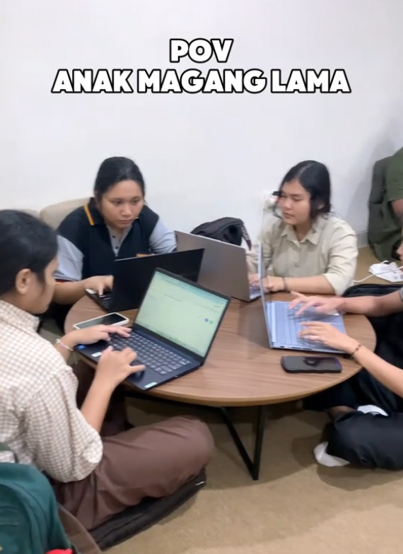 Di balik tumpukan laptop dan botol minum di meja kerja, suasana kantor tetap terasa hangat. Para karyawan saling membantu dan membimbing anak magang yang baru bergabung agar cepat beradaptasi dengan ritme kerja tim kreatif ini.
