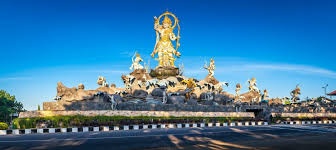 Patung ini berdiri megah di simpang utama yang menghubungkan Denpasar – Sanur – Gianyar, menjadikannya salah satu landmark penting yang menyambut siapa pun yang melintas di kawasan timur kota. Saat sore hari, cahaya matahari yang memantul di tubuh patung menciptakan siluet indah, menambah nuansa magis di tengah hiruk pikuk lalu lintas kota. 🌅