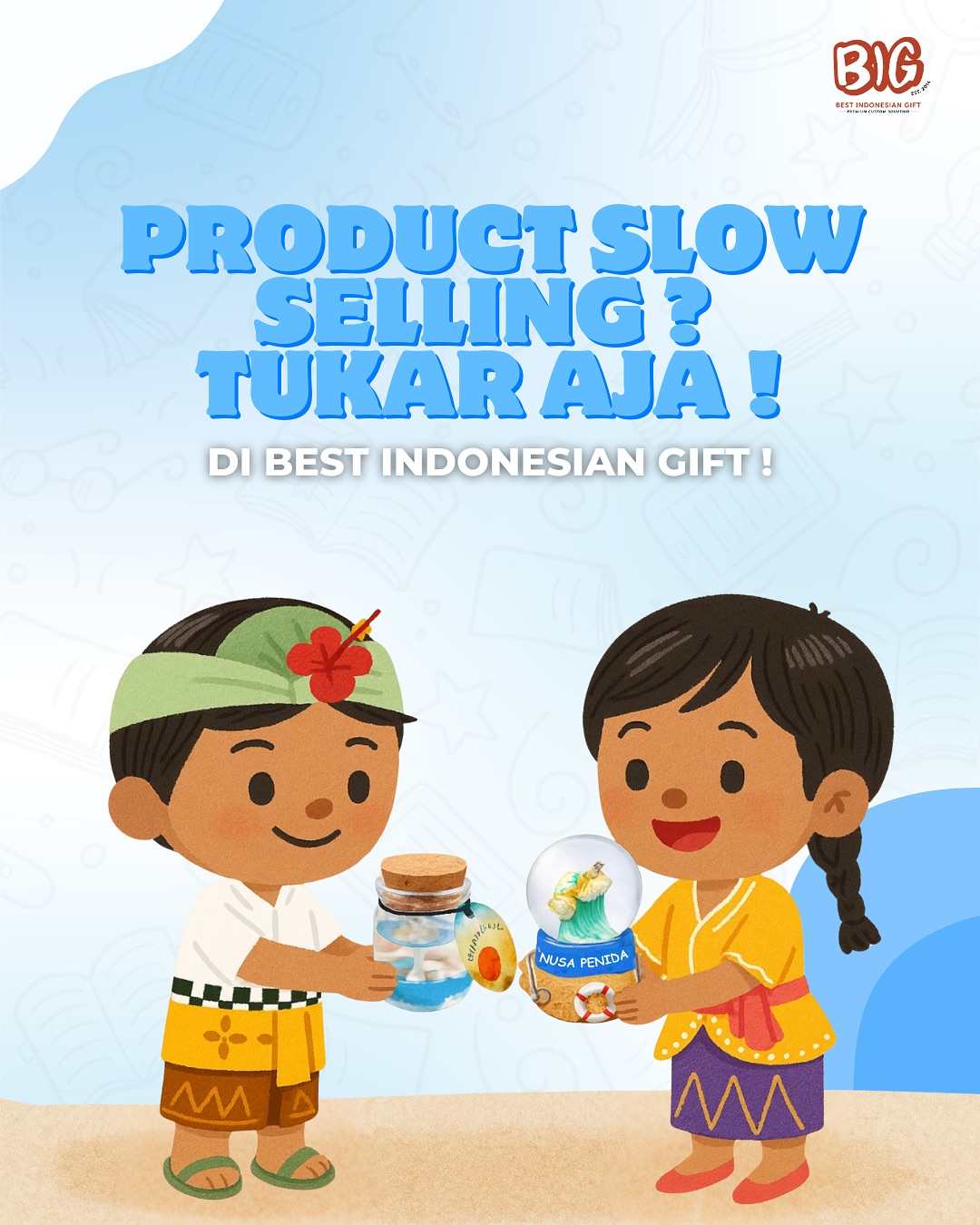 Hadir dengan solusi terbaik untuk bisnis Anda! BEST INDONESIAN GIFT (BIG) dengan bangga mempersembahkan Program Produk yang Dapat Ditukar (Exchangeable Product Program) – sebuah terobosan inovatif yang akan mengubah cara Anda mengelola stok souvenir dan produk promosi.