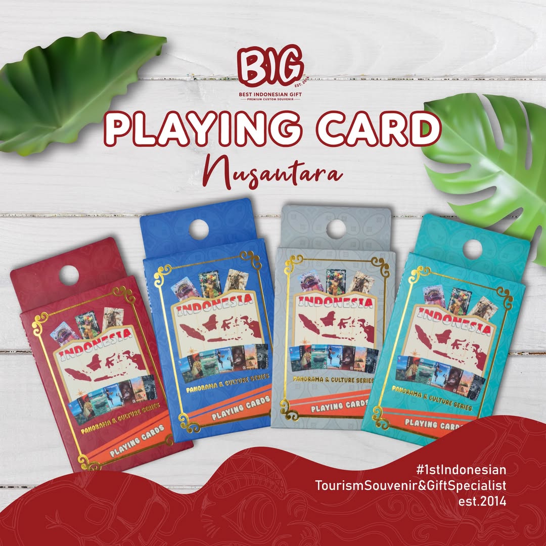 Bagi yang mencari ide souvenir yang tidak biasa dan penuh makna, Big Indonesian Gift (BIG) menghadirkan solusi kreatif melalui BIG Playing Card Nusantara. Produk ini menawarkan konsep souvenir yang keren dan multifungsi, menjadikannya lebih dari sekadar kenang-kenangan biasa.