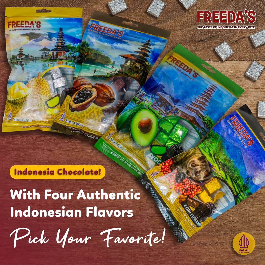 Setiap gigitan Freeda’s Chocolate menghadirkan lebih dari sekadar kelezatan – ini adalah perjalanan rasa melalui kekayaan kuliner Indonesia. Dari eksotisme durian, kelembutan alpukat, kemewahan kopi luwak, hingga kemurnian dark chocolate – semuanya terangkum dalam satu brand coklat yang memukau.