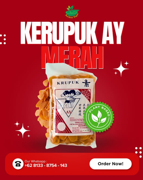 Siapa yang bisa menolak kelezatan kerupuk yang gurih dan renyah? Suara “kriuk”nya saja sudah bikin air liur mengalir! Dan untuk kita yang menjalani hidup plant-based, kini hadir Kerupuk Ay Merah dari Bumboe Vegan & Vegetarian yang siap memuaskan kerinduan akan camilan klasik ini. ✨🌱