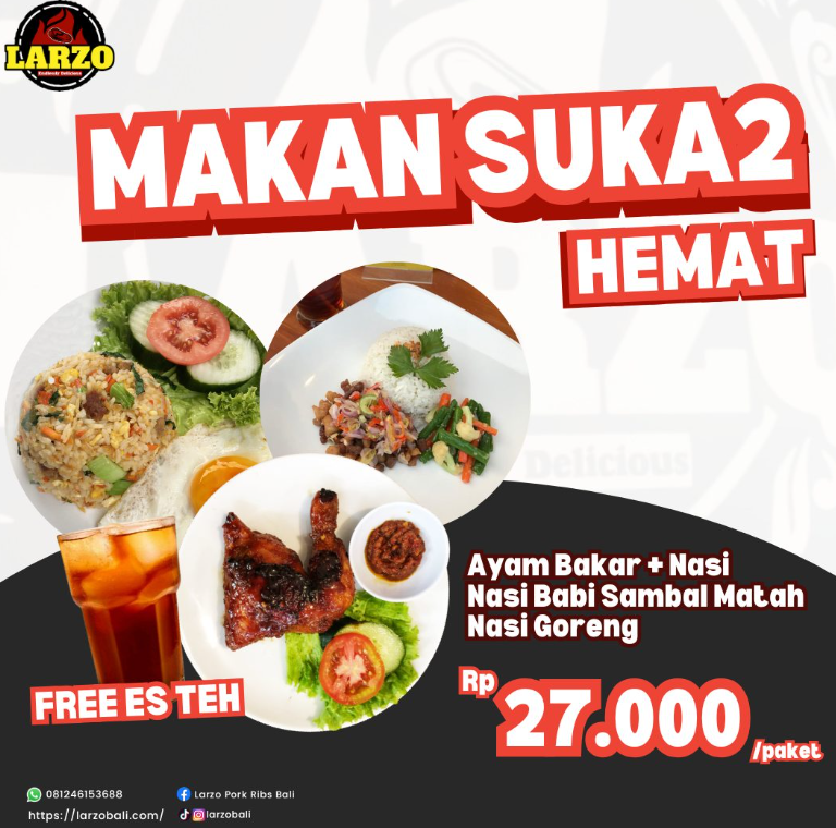 Jangan lupa follow akun Instagram kami @larzobali untuk update terbaru, promo spesial, dan foto-foto makanan yang bikin ngiler!