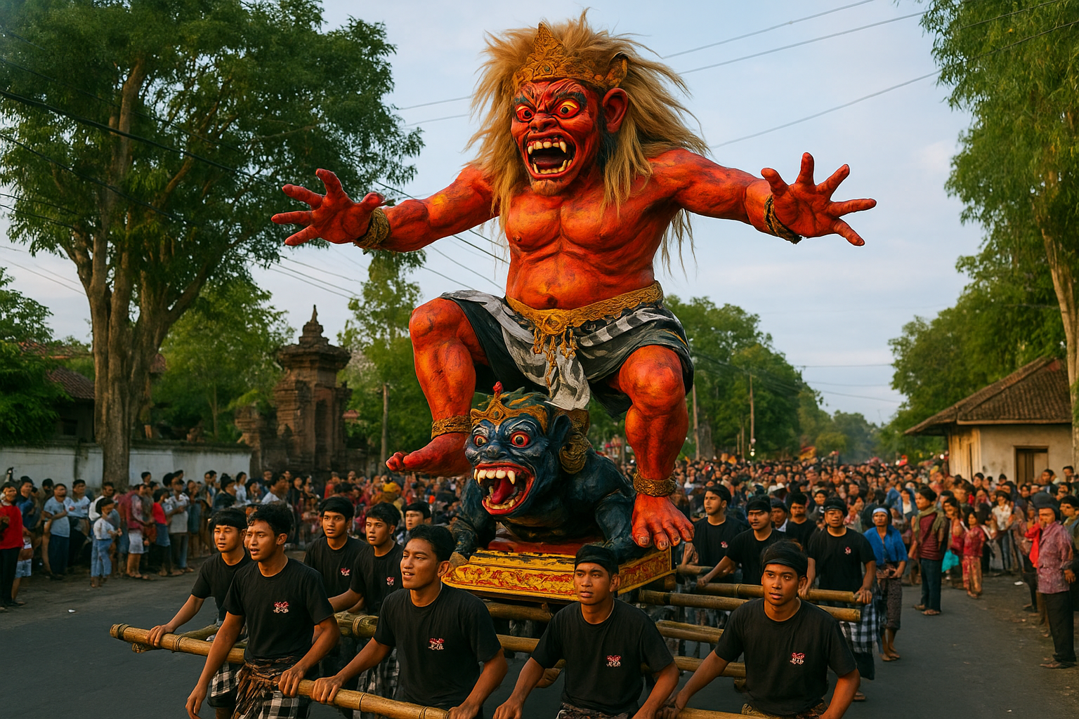 Ogoh-ogoh adalah patung raksasa yang terbuat dari bambu, kertas, dan bahan ringan lainnya. Bentuknya menggambarkan Bhuta Kala, simbol kekuatan negatif atau sifat-sifat buruk manusia. Melalui pawai ogoh-ogoh, masyarakat menjalankan ritual pengrupukan sebagai bentuk mengusir hal-hal negatif sebelum memasuki hari hening Nyepi.