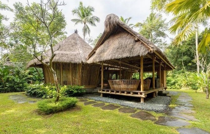 Bangunan di Green Village tidak hanya menunjukkan keindahan estetika alami, tetapi juga menegaskan kekuatan dan daya tahan bambu sebagai bahan konstruksi modern yang ramah lingkungan.