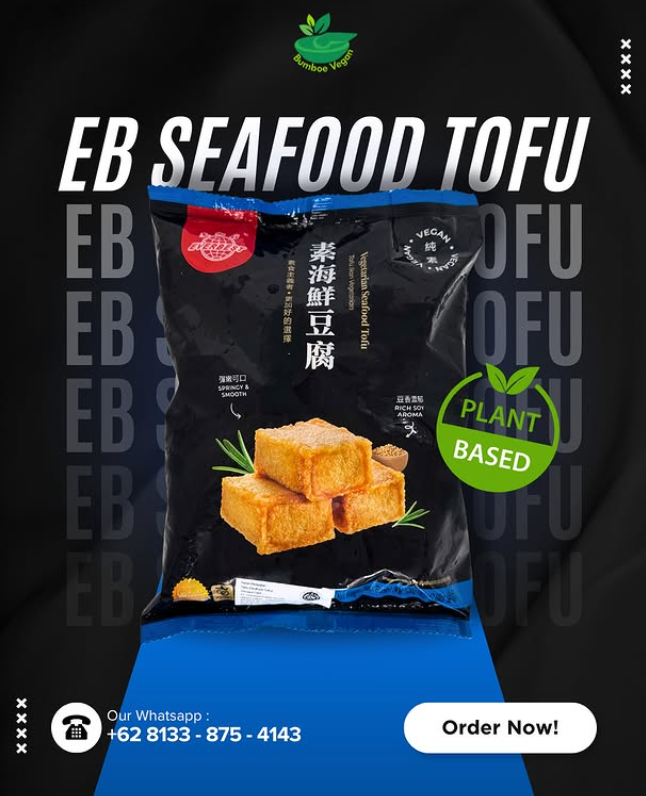 Keunggulannya tidak berhenti di situ. EB Seafood Tofu dibuat dari bahan-bahan pilihan yang 100% plant-based atau nabati. Ini membuktikan bahwa menikmati hidangan yang sehat dan ramah lingkungan sama sekali tidak mengorbankan kepuasan rasa.