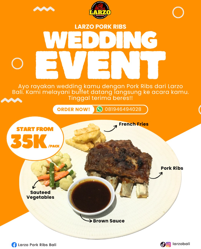 Tak perlu bingung memilih menu untuk pesta pernikahanmu. Dengan Larzo Bali, kamu bisa menyajikan hidangan istimewa yang tak hanya memanjakan selera, tetapi juga memberikan pengalaman berbeda bagi semua yang hadir.