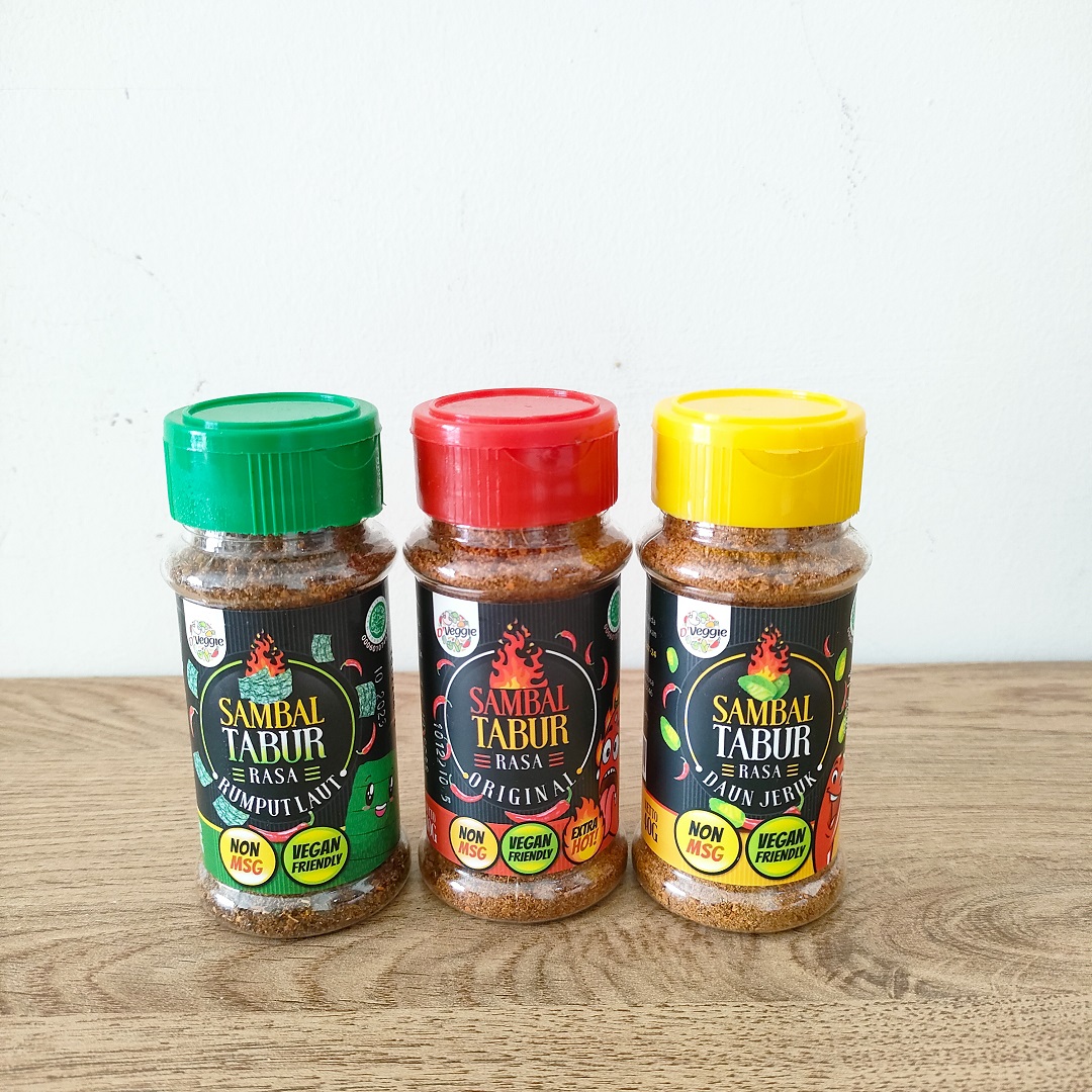 Hidup sehat dan ramah lingkungan tak lagi berarti mengurangi kenikmatan rasa. Buktinya, Sambal Tabur d’Veggie hadir untuk menjawab kerinduan para pecinta pedas dan foodie yang menginginkan camilan seru tanpa bahan hewani. Terbuat dari pilihan bahan berkualitas, sambal kering ini menjadi bukti bahwa vegan food bisa sangat CRUNCHY, GURIH, dan BIKIN KETAGIHAN!
