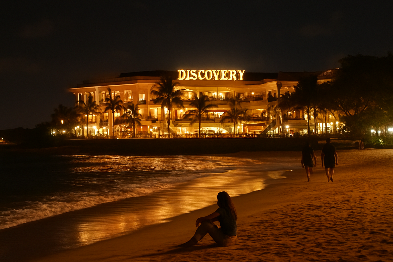 Suasana malam di Pantai depan Discovery Mall selalu menjadi daya tarik tersendiri bagi para wisatawan yang ingin menikmati sisi lain Kuta. Saat matahari terbenam, area pantai berubah menjadi tempat yang tenang, ditemani hembusan angin laut dan gemerlap lampu dari bangunan mall yang ikonik. Banyak pengunjung datang untuk berjalan santai, menikmati deburan ombak, atau sekadar duduk sambil merasakan atmosfer malam yang menenangkan.