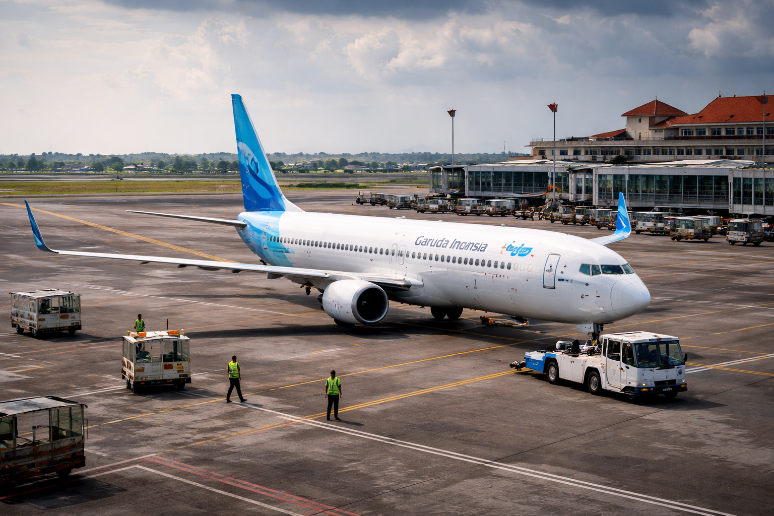 Pemandangan Garuda Indonesia push back di Bandara Ngurah Rai menghadirkan kesan profesional dan terorganisir, mencerminkan standar operasional maskapai nasional Indonesia. Dengan latar suasana bandara yang dinamis, aktivitas ini menjadi bagian tak terpisahkan dari rutinitas penerbangan harian di Bandara Internasional I Gusti Ngurah Rai.
