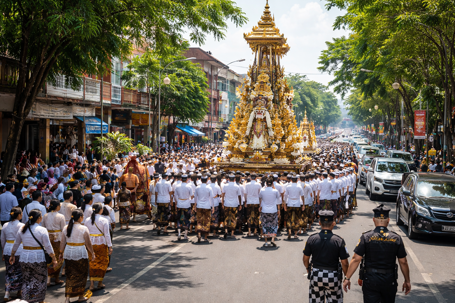 Meski sempat menyebabkan perlambatan arus kendaraan, situasi lalu lintas di Jalan Thamrin Denpasar tetap terkendali. Para pengendara terlihat memahami dan menghormati jalannya upacara adat tersebut, sejalan dengan nilai toleransi dan kearifan lokal yang dijunjung tinggi di Bali.