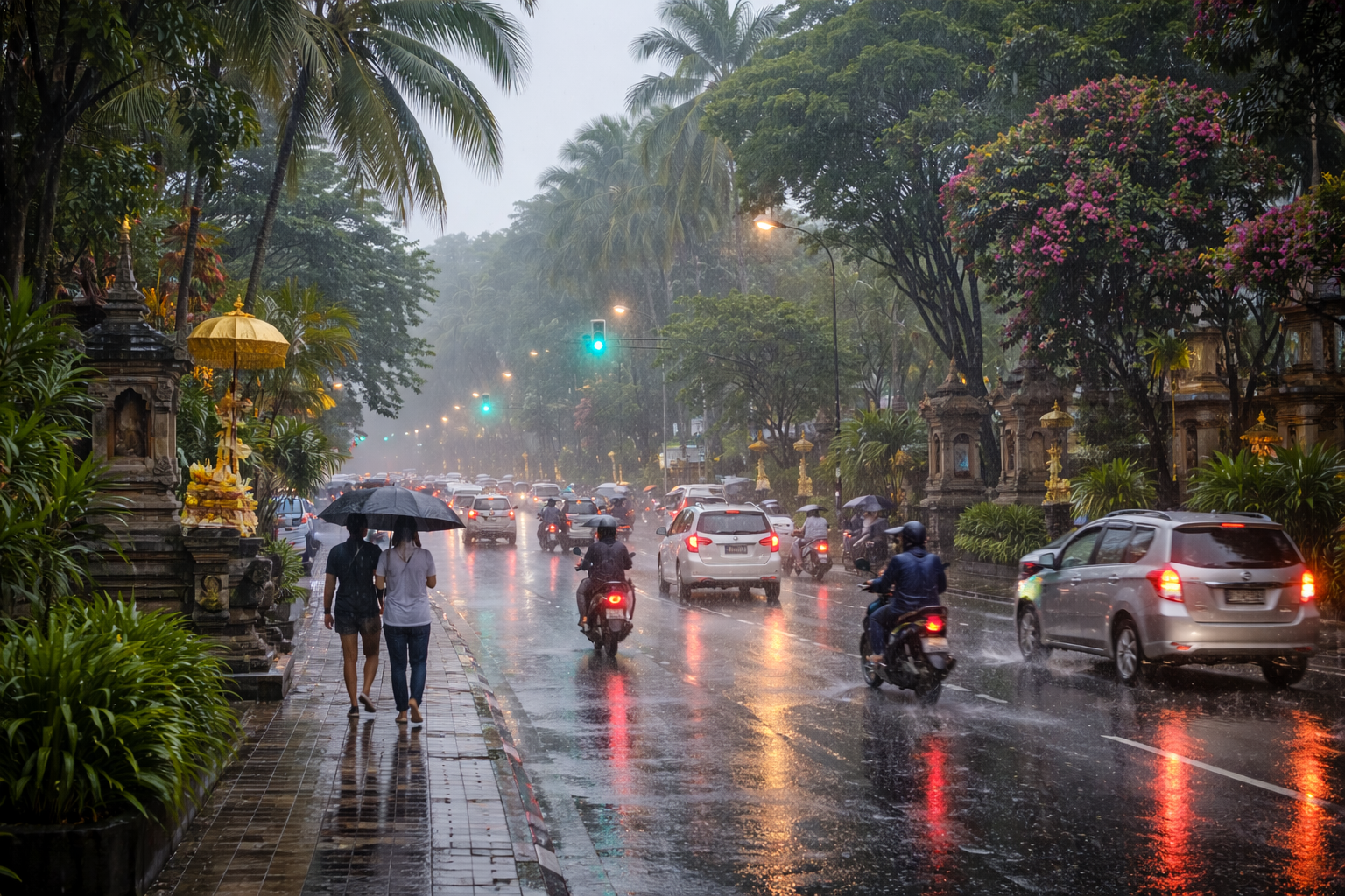 Kondisi Denpasar diguyur hujan pagi ini juga memengaruhi lalu lintas dan kegiatan masyarakat. Beberapa ruas jalan tampak lebih lengang, sementara pengendara terlihat lebih berhati-hati demi keselamatan bersama.
