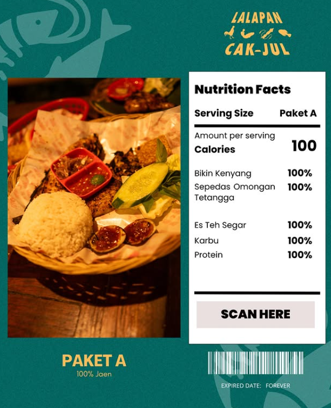 Dengan slogan “PAKETA 100% Jaen”, MinJul tidak hanya menjual makanan, tetapi pengalaman makan yang jaen (keren/enak) secara keseluruhan. Yang menarik, “expired date” paket ini adalah FOREVER, menandakan bahwa kenikmatan dan kepuasan yang diberikan akan selalu dikenang.