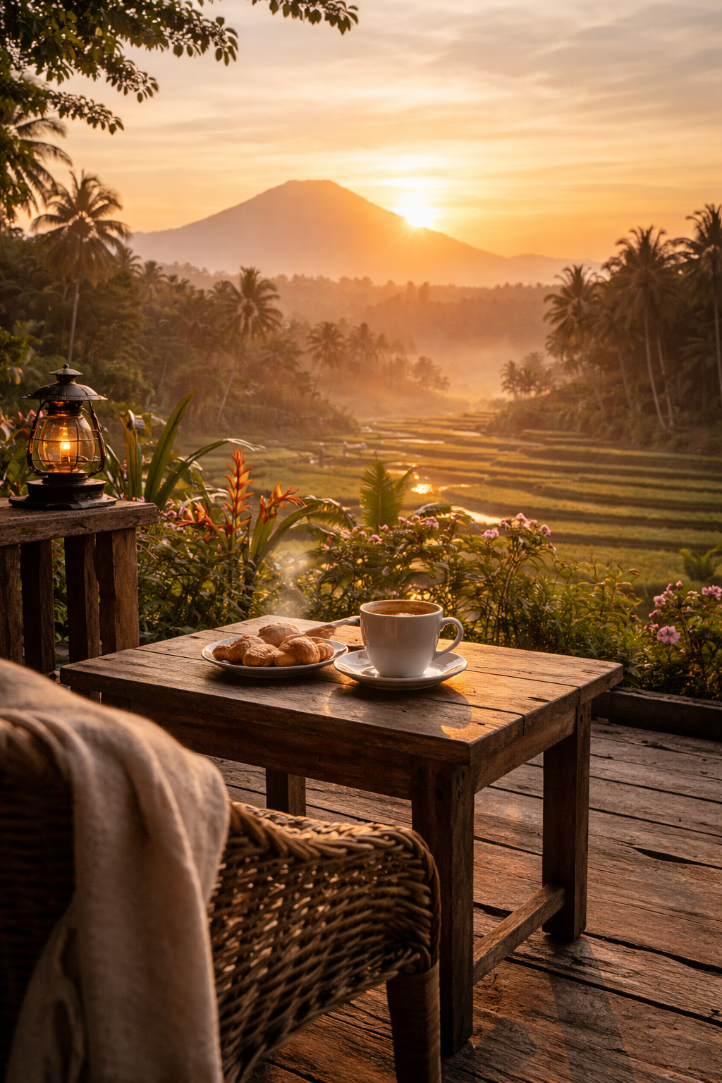 Banyak sudut di Bali yang menawarkan panorama matahari terbit yang memukau, mulai dari tepi pantai, area persawahan, hingga sudut desa yang masih alami. Duduk tenang sambil menyeruput kopi, menikmati suara alam, dan menyaksikan cahaya pagi menyinari sekitar menjadi momen refleksi yang menenangkan pikiran.