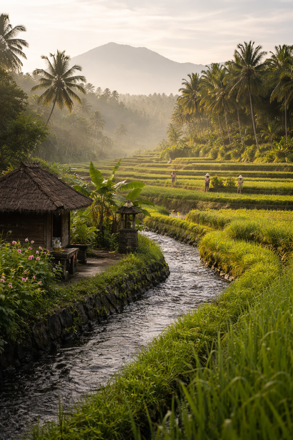 Keindahan suasana pagi di subak Belumbang Bali tidak hanya terletak pada pemandangannya, tetapi juga pada nilai filosofi yang terkandung di dalamnya. Sistem subak mencerminkan konsep Tri Hita Karana, yaitu keharmonisan hubungan antara manusia, alam, dan Tuhan, yang hingga kini tetap dijaga oleh masyarakat setempat.
