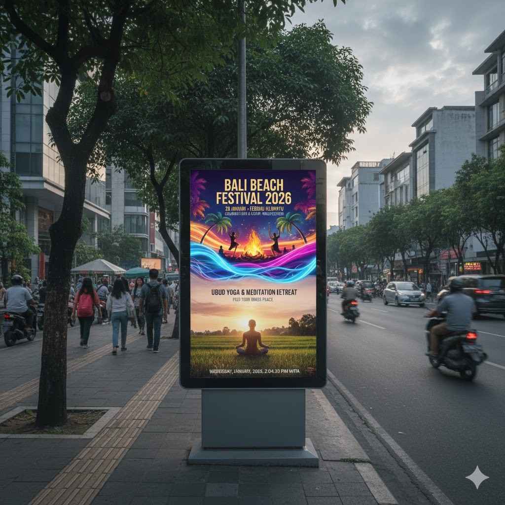 LED videotron menjadi pilihan promosi digital karena visualnya kuat, bergerak, dan mudah menarik perhatian orang yang lewat, terutama di area ramai Bali.
