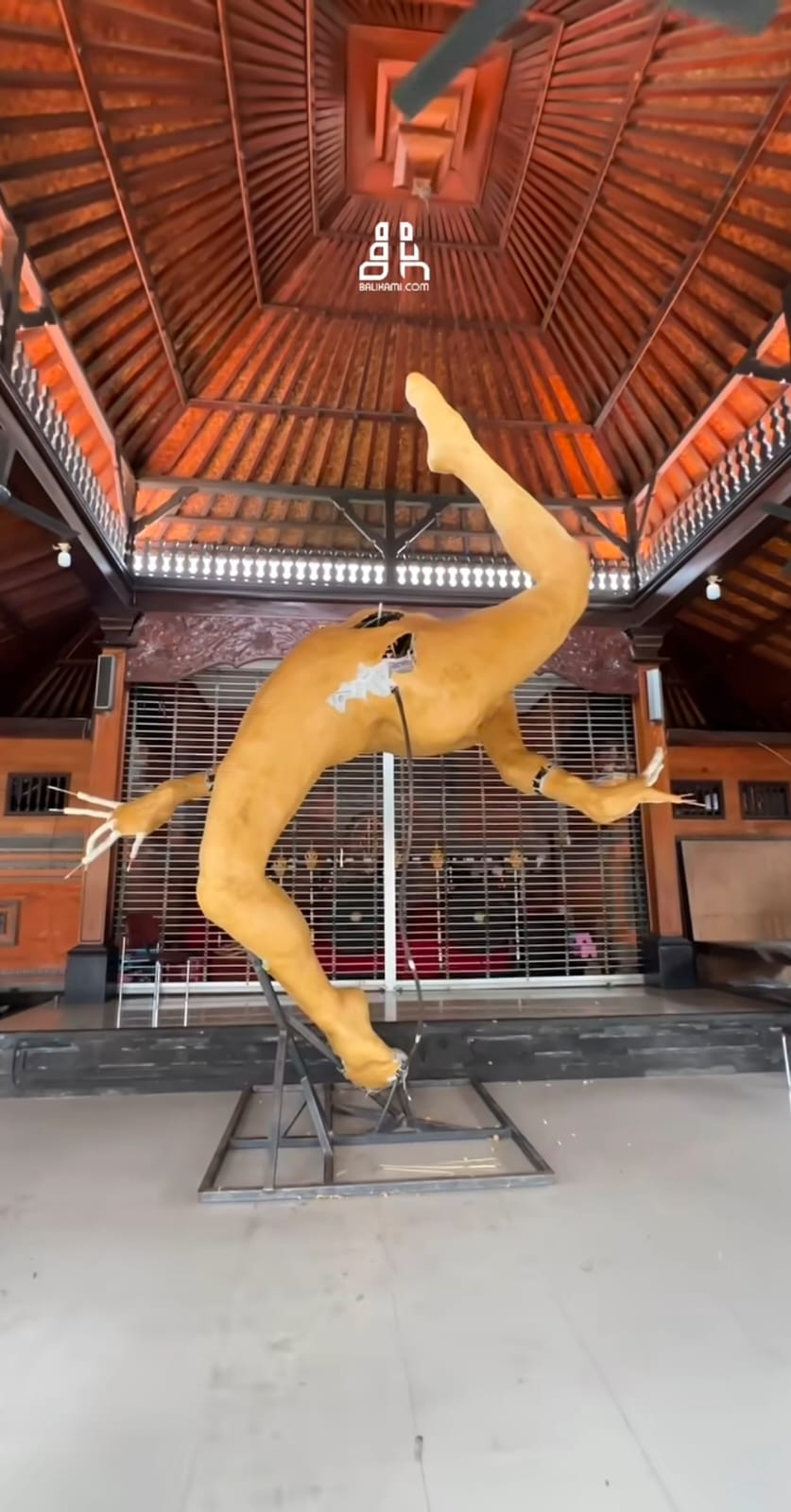 Struktur Ogoh-Ogoh Banjar Gemeh berdiri kokoh di atas rangka penyangga dengan posisi tubuh yang seolah melayang. Desain ini menunjukkan kreativitas tinggi serta ketelitian teknis dalam menjaga keseimbangan antara bentuk, struktur, dan estetika.