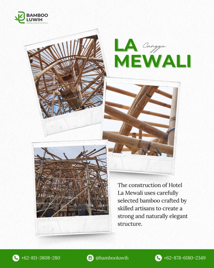 Pembangunan Hotel La Mewali di Canggu merupakan proses yang memadukan material alami dengan keahlian tangan para pengrajin lokal. Menggunakan bambu pilihan sebagai elemen utama, setiap tahap pembangunan dirancang dengan ketelitian tinggi untuk menghasilkan struktur yang tidak hanya kuat, tetapi juga bernilai artistik dan selaras dengan alam.
