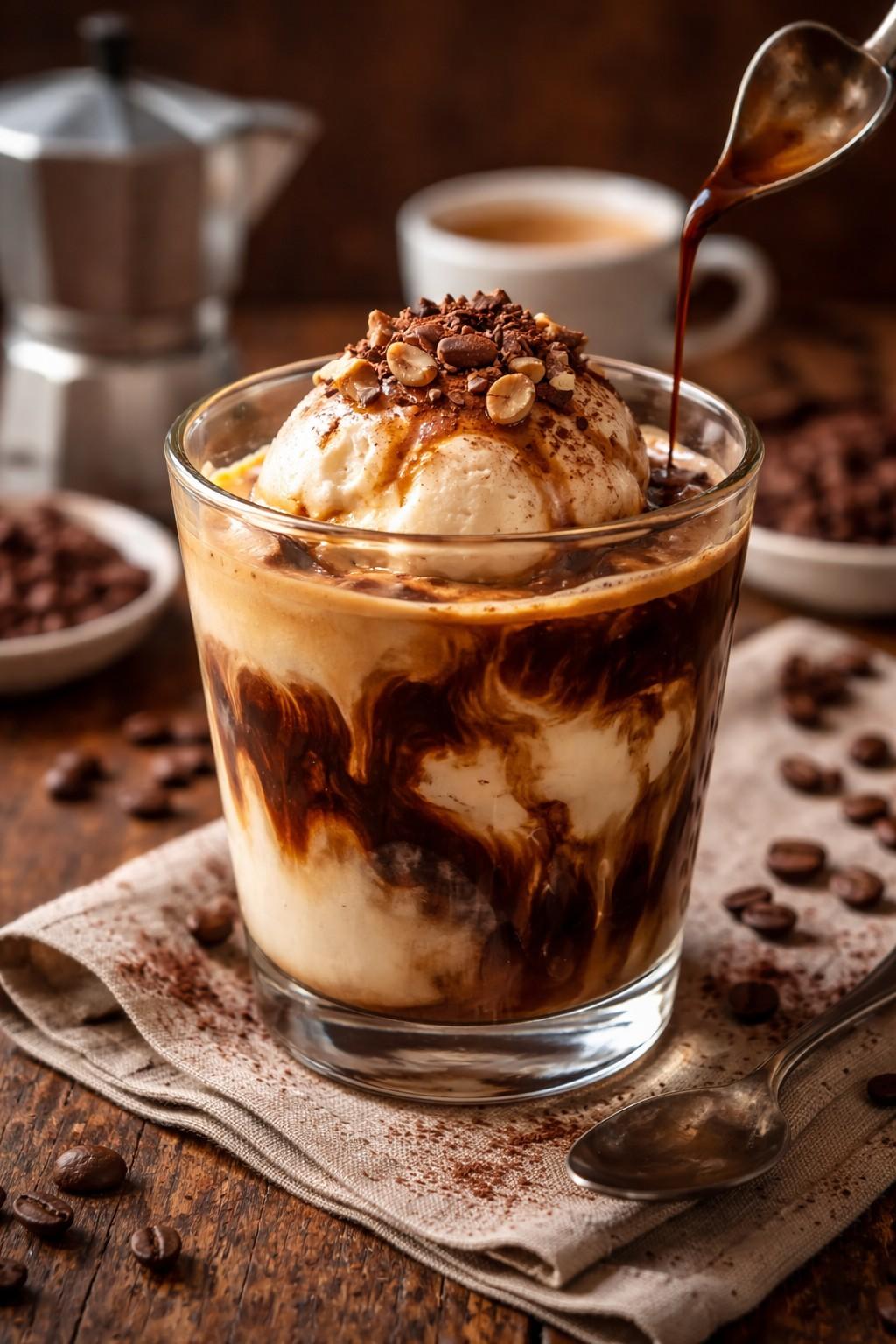 Secara harfiah, kata “affogato” berarti “tenggelam” dalam bahasa Italia. Gelato vanila yang creamy akan “tenggelam” dalam espresso panas, meleleh perlahan dan bercampur dengan kopi. Proses ini menciptakan rasa yang seimbang antara manis dan pahit, sekaligus memberikan tekstur yang lembut dan memanjakan lidah. Beberapa orang menambahkan taburan cokelat, kacang, atau liqueur untuk sensasi tambahan, namun versi klasik Larzo tetap jadi favorit karena kesederhanaannya yang elegan dan nikmat.