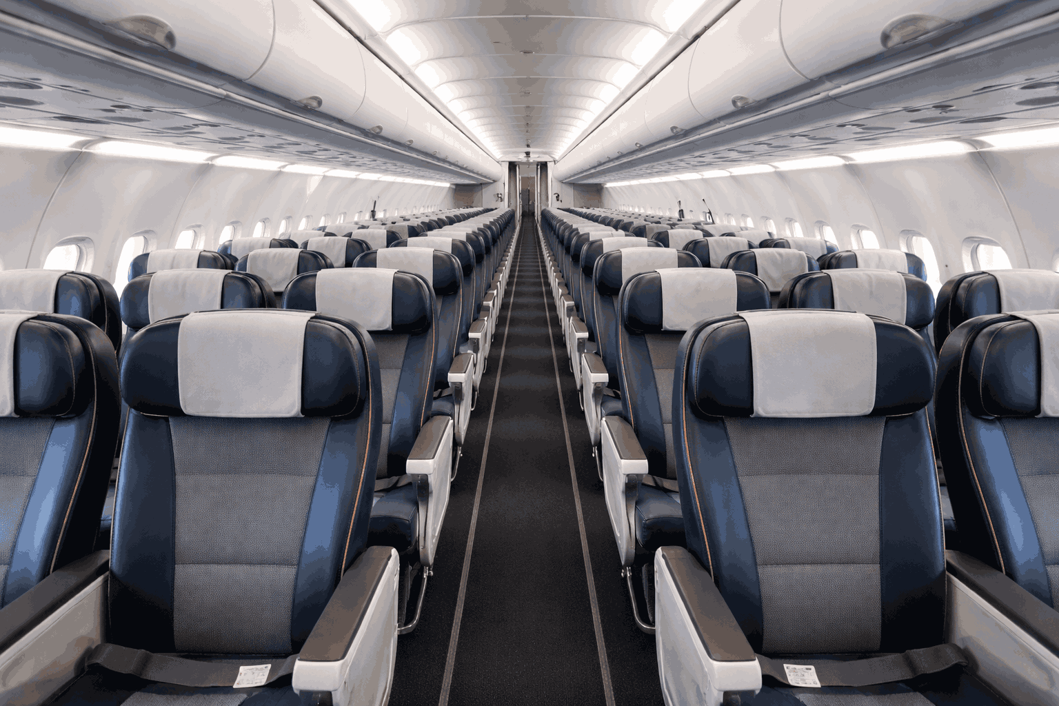 Lorong kabin pesawat biasanya hanya cukup untuk satu arus orang berjalan.