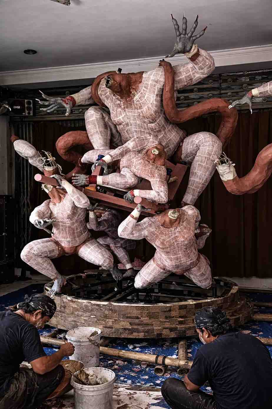 Proses ini juga menjadi ruang diskusi antar anggota pembuat ogoh-ogoh. Evaluasi terus dilakukan untuk memastikan setiap figur saling mendukung secara visual dan tidak mengurangi kekuatan cerita yang ingin disampaikan melalui karya tersebut.