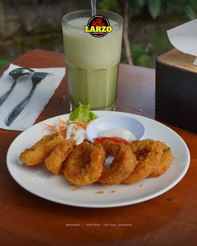 Calamari Ring & Milky Greentea menjadi salah satu kombinasi menu favorit di Larzo yang menawarkan perpaduan rasa gurih dan segar dalam satu waktu. Menu ini cocok untuk kamu yang ingin menikmati camilan ringan namun tetap memuaskan, baik saat santai sendiri maupun saat berkumpul bersama teman dan keluarga.