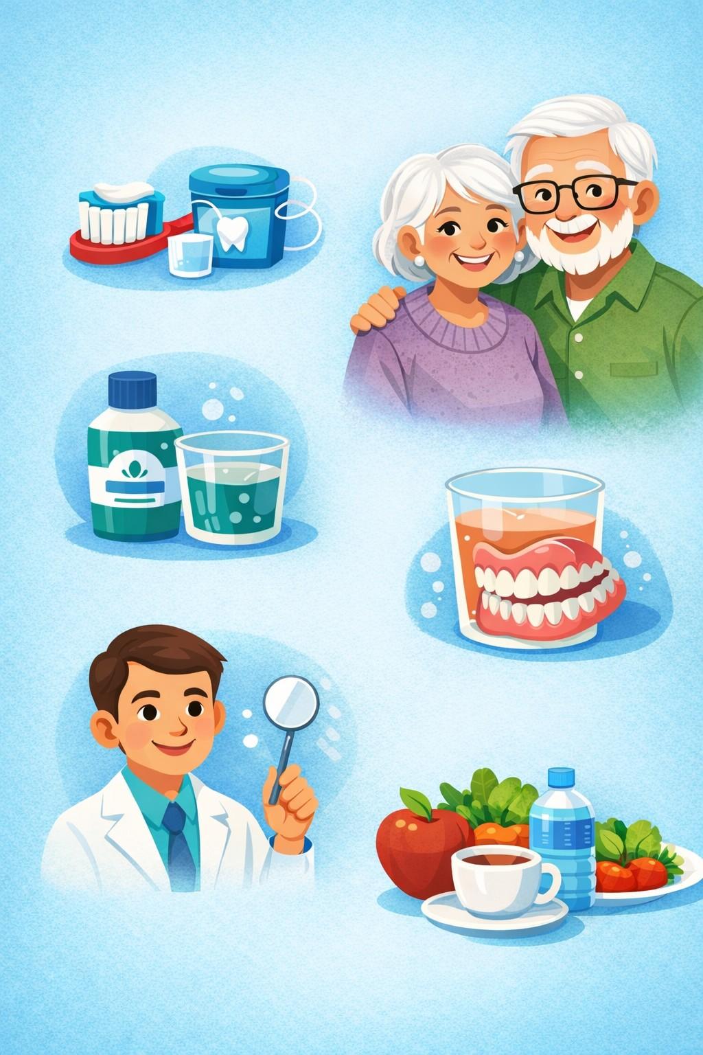 Bagi lansia yang menggunakan gigi palsu, penting untuk membersihkannya secara rutin agar tetap higienis dan nyaman digunakan. Gigi palsu sebaiknya dilepas dan dibersihkan setiap hari untuk mencegah penumpukan bakteri dan menjaga kesehatan jaringan mulut.