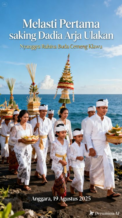 Melasti Pertama Dadia Arja Ulakan adalah upacara pembersihan spiritual yang dilaksanakan oleh komunitas Dadia Arja di Ulakan sebagai persiapan menuju hari suci Rahina Buda Cemeng Klawu pada 19 Agustus 2025 . Upacara ini merupakan tradisi Hindu Bali yang fokus pada penyucian diri dan alam melalui ritual ritual di tepi laut.