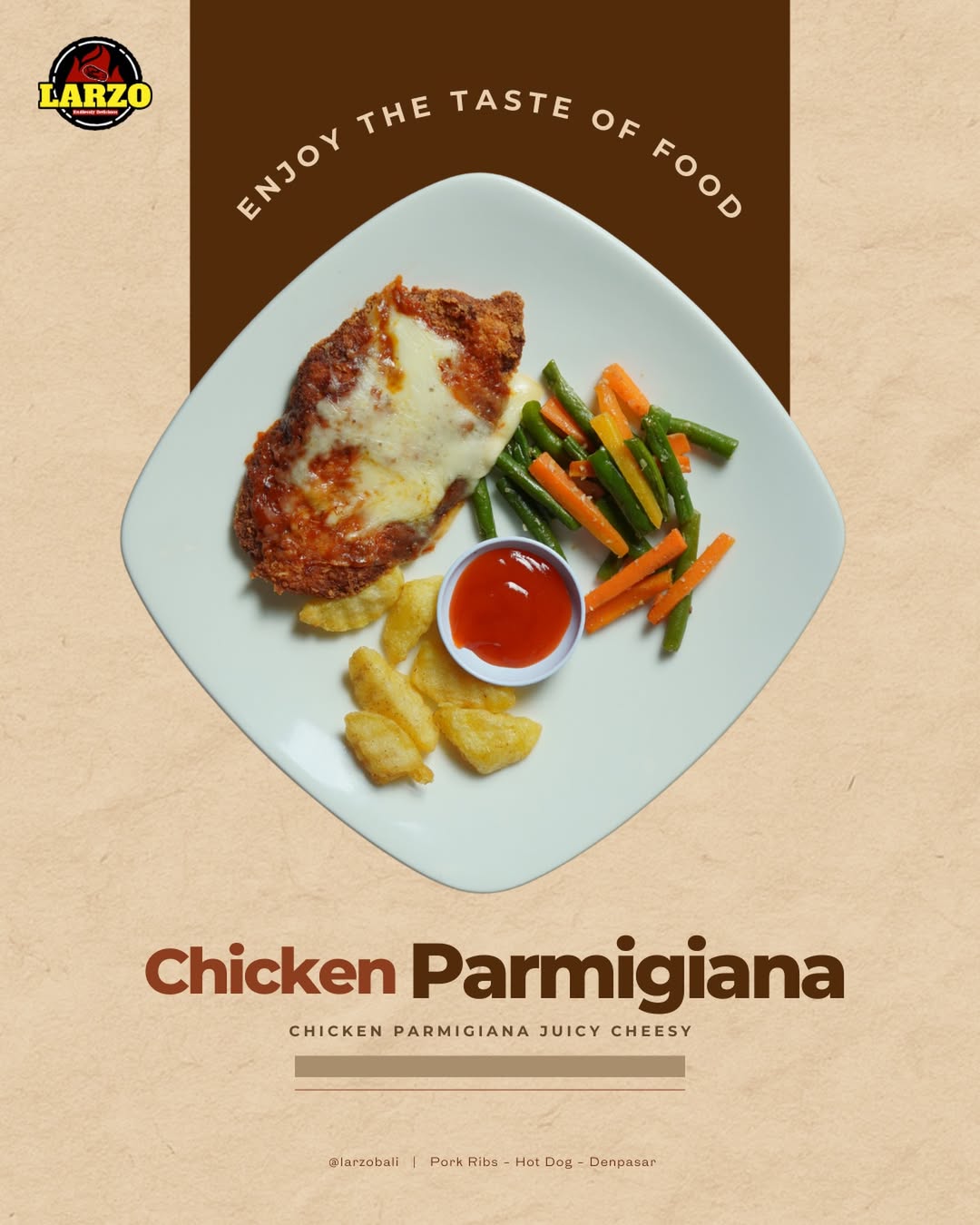 Dengan bahan berkualitas, teknik pengolahan yang tepat, serta perpaduan rasa yang harmonis, Chicken Parmigiana Larzo menghadirkan pengalaman menikmati hidangan klasik yang memuaskan dalam setiap sajian.