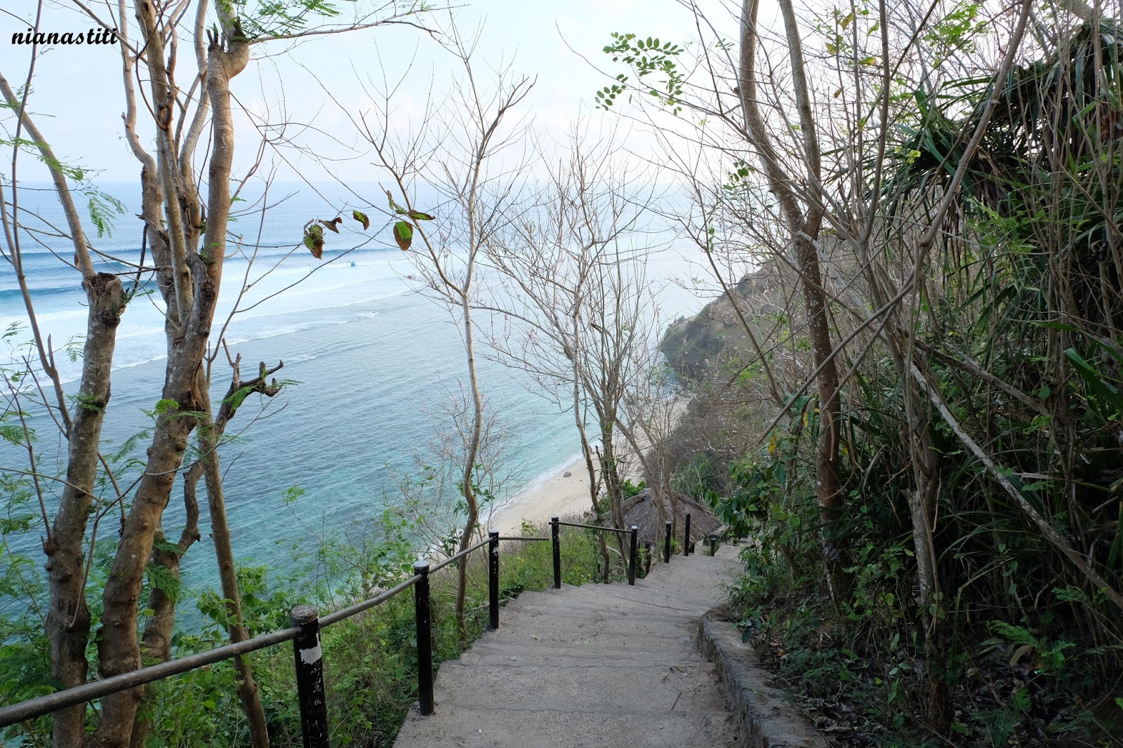 Senja Gunung Payung Uluwatu menghadirkan panorama matahari terbenam dengan nuansa cahaya yang lembut dan menenangkan. Sejak awal menuruni tangga menuju pantai, suasana terasa berbeda. Ketika matahari bergerak turun ke garis cakrawala, warna langit berubah menjadi gradasi jingga, keemasan, hingga merah muda pastel yang tampak begitu soft.