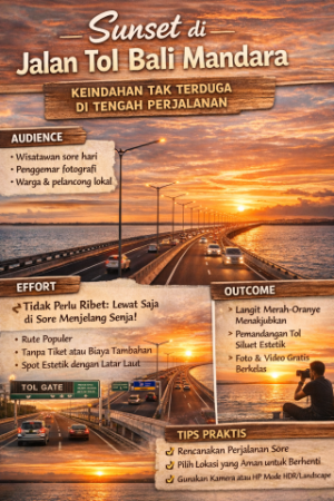 Sunset di Jalan Tol Bali Mandara bukan hanya pemandangan biasa. Ini adalah momen visual yang cocok untuk: