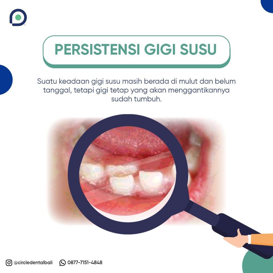 Persistensi gigi susu adalah kondisi ketika gigi susu masih bertahan di dalam mulut dan belum tanggal, sementara gigi tetap yang seharusnya menggantikannya sudah mulai tumbuh. Kondisi ini cukup sering terjadi, terutama pada anak usia sekolah dasar ketika masa pergantian gigi sedang berlangsung.
