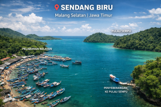 Sendang Biru terletak di pesisir selatan Kabupaten Malang, Jawa Timur, tepatnya di Desa Tambakrejo, Kecamatan Sumbermanjing Wetan. Kawasan ini dikenal sebagai pelabuhan nelayan aktif sekaligus gerbang utama menuju Pulau Sempu.