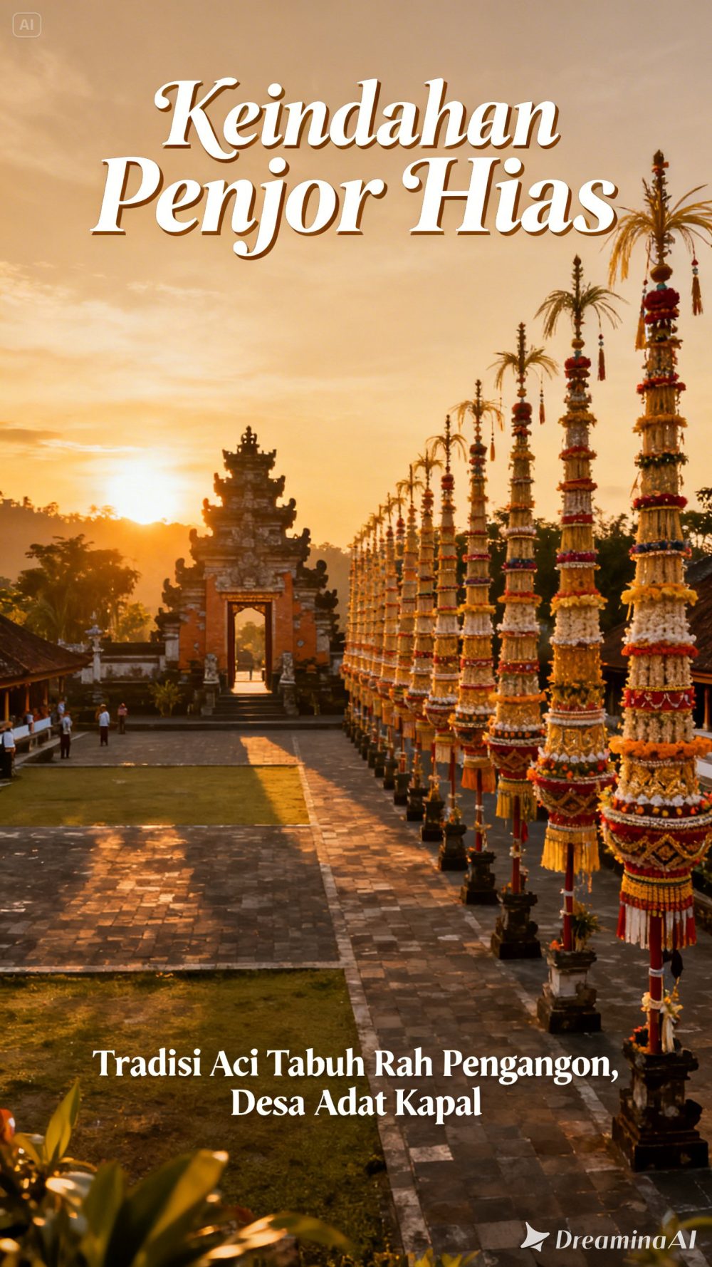 Keindahan penjor hias karya Sekaa Teruna Teruni (STT) se-Desa Adat Kapal terpajang megah di Jaba Pura Desa Adat Kapal. Lomba ini menjadi bagian dari rangkaian tradisi sakral Aci Tabuh Rah Pengangon yang digelar secara turun-temurun oleh masyarakat adat setempat.