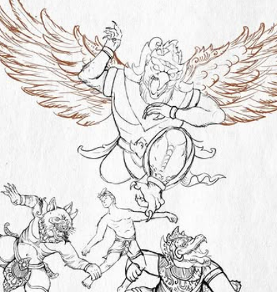 Menggambarkan sosok penuh amarah, liar, dan tak terkendali. Biasanya divisualisasikan dengan ekspresi tajam, api, atau sayap yang merepresentasikan kekuatan besar.