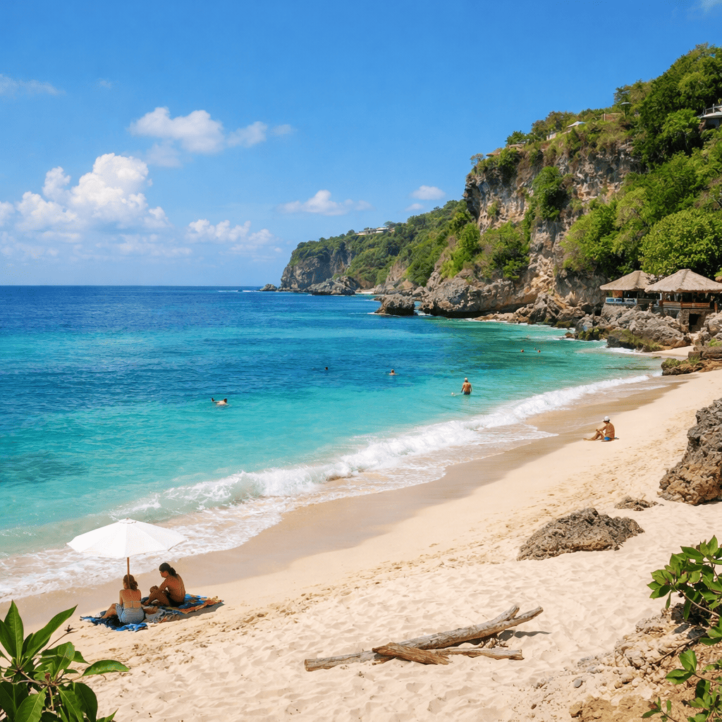 Terletak di wilayah Pecatu, kawasan Kuta Selatan, pantai ini dikenal sebagai salah satu destinasi yang menawarkan ketenangan di Bali Selatan. Hamparan pasir putih yang luas berpadu dengan air laut berwarna biru kehijauan menciptakan suasana yang membuat hati terasa adem sejak pertama kali tiba.