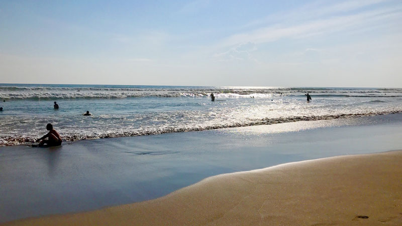 Buat yang tidak ingin berselancar, bermain di tepian air juga jadi pilihan menyenangkan. Sensasi air laut yang menyentuh kaki di tengah terik matahari memberi efek segar seketika. Tidak heran jika banyak pengunjung spontan turun ke laut begitu melihat ombak datang bergantian.