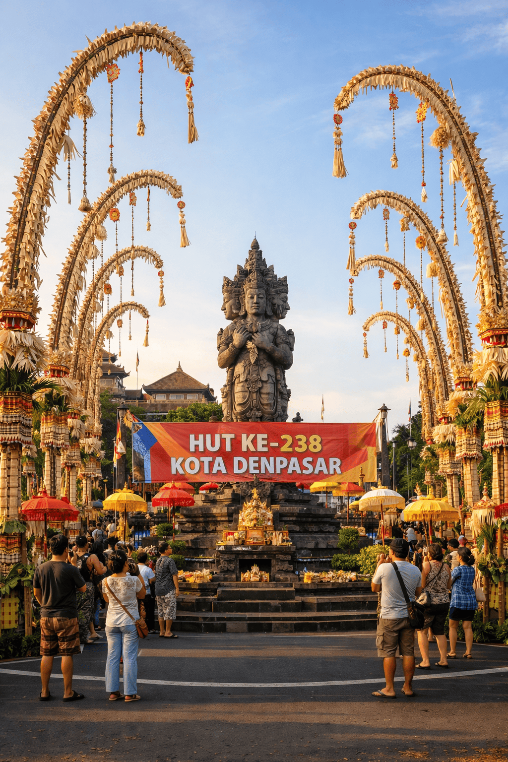 Sebagai titik nol Kota Denpasar, kawasan Catur Muka memang selalu menjadi pusat berbagai perayaan penting. Monumen ini memiliki nilai historis sekaligus simbolis bagi masyarakat Bali, terutama warga Denpasar. Pada momentum HUT ke-238 tahun ini, suasana terasa semakin istimewa berkat deretan penjor yang menghiasi setiap sudut area.