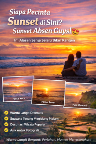 Jika berbicara soal senja, Bali selalu masuk daftar teratas. Beberapa lokasi favorit menikmati matahari terbenam antara lain: