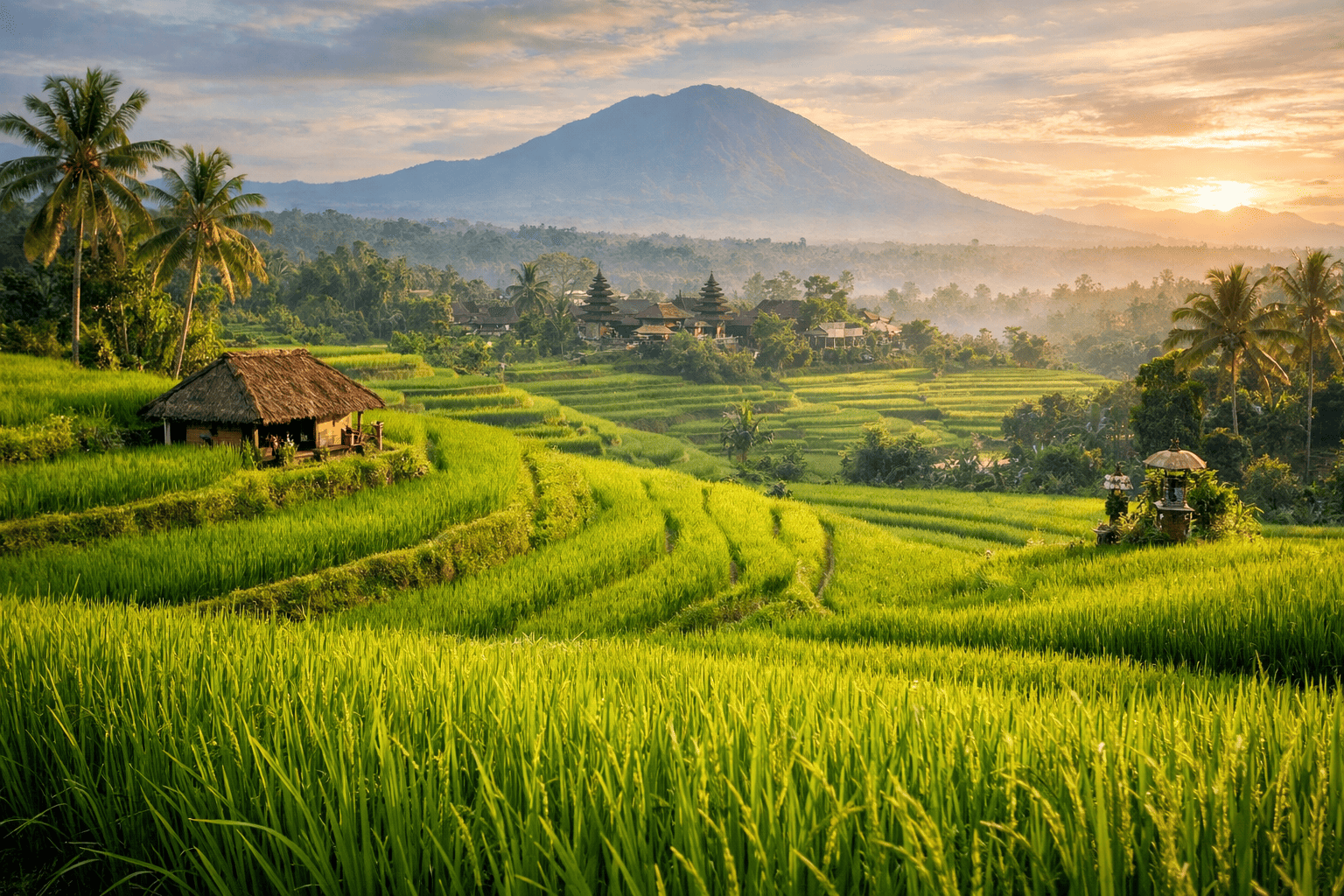 Datang ke sini seperti memasuki dunia yang berbeda. Tidak ada suara kendaraan yang bising, hanya gemericik air irigasi dan hembusan angin yang menyapu tanaman padi. Pemandangan sawah terasering yang rapi menghadirkan panorama hijau berlapis-lapis yang sangat memanjakan mata.