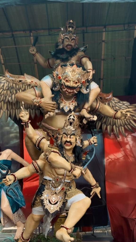 - Komposisi Berlapis: Ogoh-ogoh ini menampilkan beberapa karakter sekaligus dalam satu struktur yang kokoh.