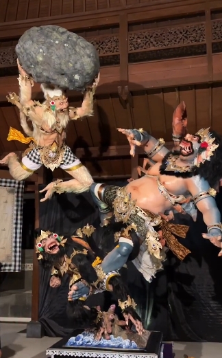 Tim juri tiba di lokasi tepat waktu untuk melihat hasil karya yang sudah dipajang rapi di depan balai banjar. Para pemuda dari Sekaa Teruna Sindu Kelod memberikan penjelasan singkat mengenai tema serta konsep yang mereka usung dalam pembuatan patung tahun ini. Selanjutnya, proses evaluasi dilakukan dengan sangat teliti untuk melihat setiap detail yang sudah dikerjakan selama beberapa bulan terakhir oleh para pemuda.