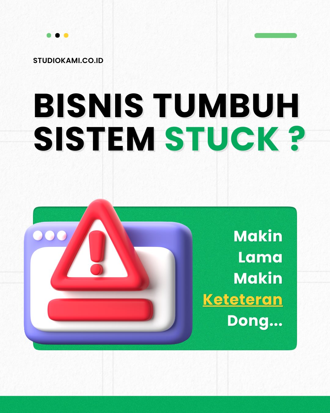 Banyak pengusaha yang mengeluh karena merasa operasional bisnis berantakan padahal jumlah pelanggan mereka sedang meningkat drastis. Masalah utama dari operasional bisnis berantakan biasanya terjadi karena sistem kerja yang digunakan masih sangat kuno. Kamu tidak bisa lagi mengandalkan cara kerja lama ketika skala usaha kamu sudah naik ke level yang lebih tinggi. Pertumbuhan tanpa adanya sistem yang kuat itu sebenarnya bukan sebuah kemajuan, melainkan bom waktu yang siap meledak.
