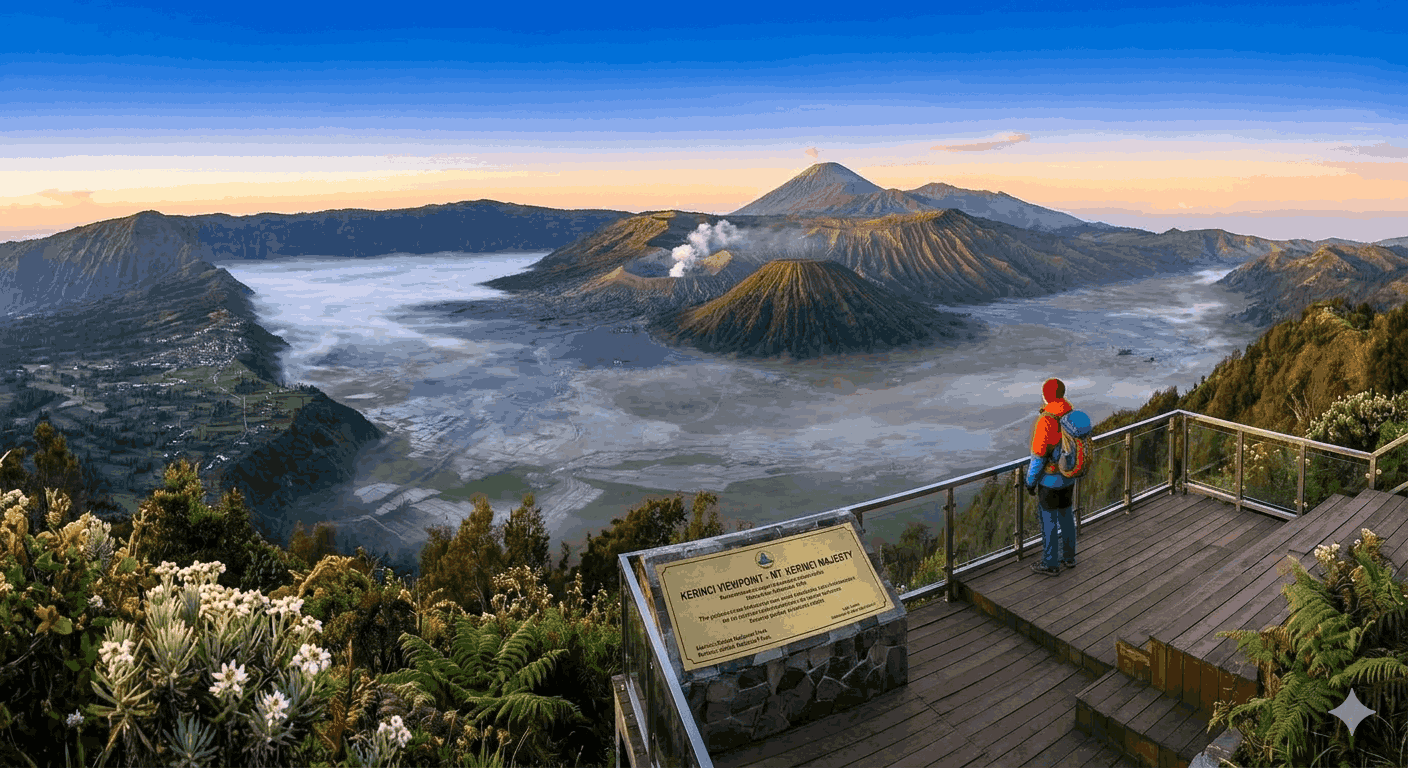 Pertama-tama, pemandangan paling ikonik adalah saat matahari menyentuh garis cakrawala. Dari ketinggian, kamu tidak hanya melihat langit, tetapi juga lautan awan di bawahmu. Cahaya jingga akan membakar permukaan awan tersebut hingga terlihat seperti samudera api. Suasana sunyi di ketinggian menambah syahdu momen yang tak terlupakan ini.