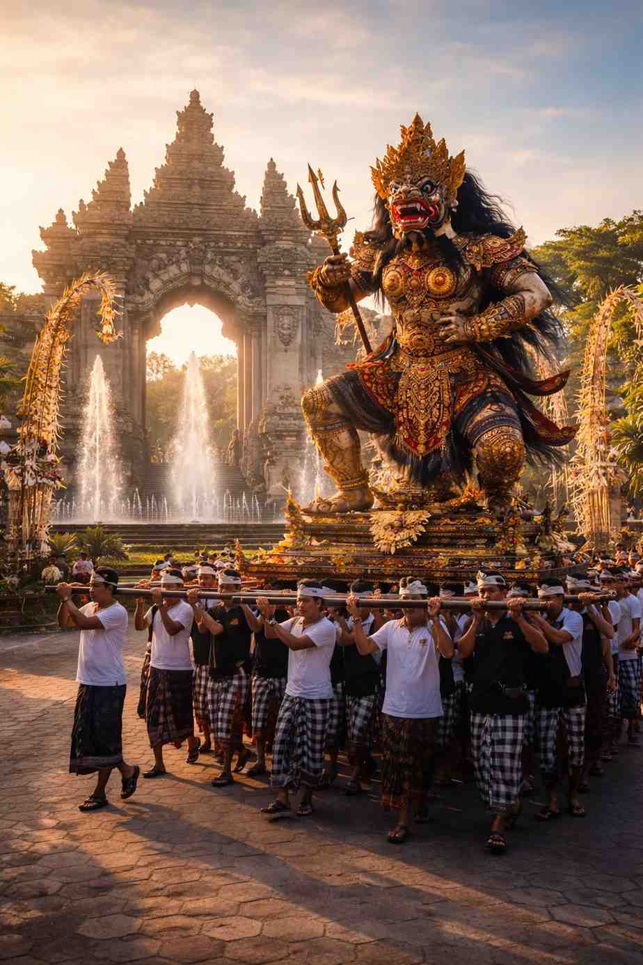 Selain itu, panitia dan peserta juga terlihat melakukan berbagai persiapan teknis. Mulai dari pengaturan posisi ogoh-ogoh hingga pengecekan kondisi karya.