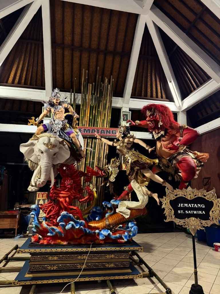 - Integrasi Narasi: Setiap elemen hiasan pada tubuh figur memiliki kaitan langsung dengan alur cerita utama yang diusung oleh para pemuda Banjar Jematang.