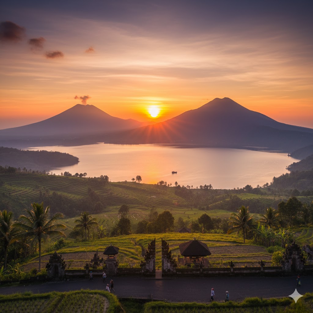 Bali memiliki banyak tempat yang menawarkan pemandangan matahari terbit yang menakjubkan. Salah satu lokasi yang cukup terkenal untuk menikmati sunrise adalah Pinggan Village. Desa yang berada di kawasan dataran tinggi ini dikenal dengan panorama pagi hari yang sangat indah dan suasana yang masih tenang.