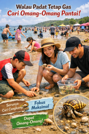 Pantai selalu punya cara untuk menarik siapa saja, bahkan saat suasana sedang padat sekalipun. Di antara riuhnya suara ombak dan pengunjung yang berlalu-lalang, ada satu aktivitas sederhana yang tetap terasa spesial: cari omang-omang pantai. Kegiatan ini terlihat sepele, tetapi justru di situlah letak keseruannya.