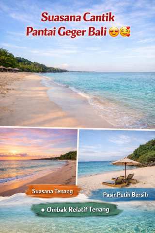 Berbeda dengan pantai-pantai populer lainnya di Bali, Pantai Geger terasa lebih damai. Tidak terlalu ramai, tidak terlalu bising… seperti tempat yang sengaja menjaga ketenangannya.